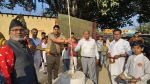 कार्यक्रम में आचार्य मृगेंद्र शास्त्री की उपस्थिति भी रही। ध्वजारोहण समाजसेवी सतीश सैनी द्वारा किया गया, जबकि ध्वज पूजन थानाप्रभारी गजेंद्र सिंह ने संपन्न कराया।