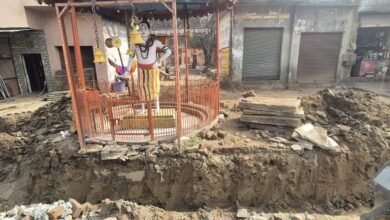 शिव मूर्ति के पास नाला निर्माण को लेकर शाहपुर में विवाद, धार्मिक संगठनों ने जताई आपत्ति,अधिशासी अधिकारी ने कहा निर्माण से नही होगी मंदिर को कोई हानि